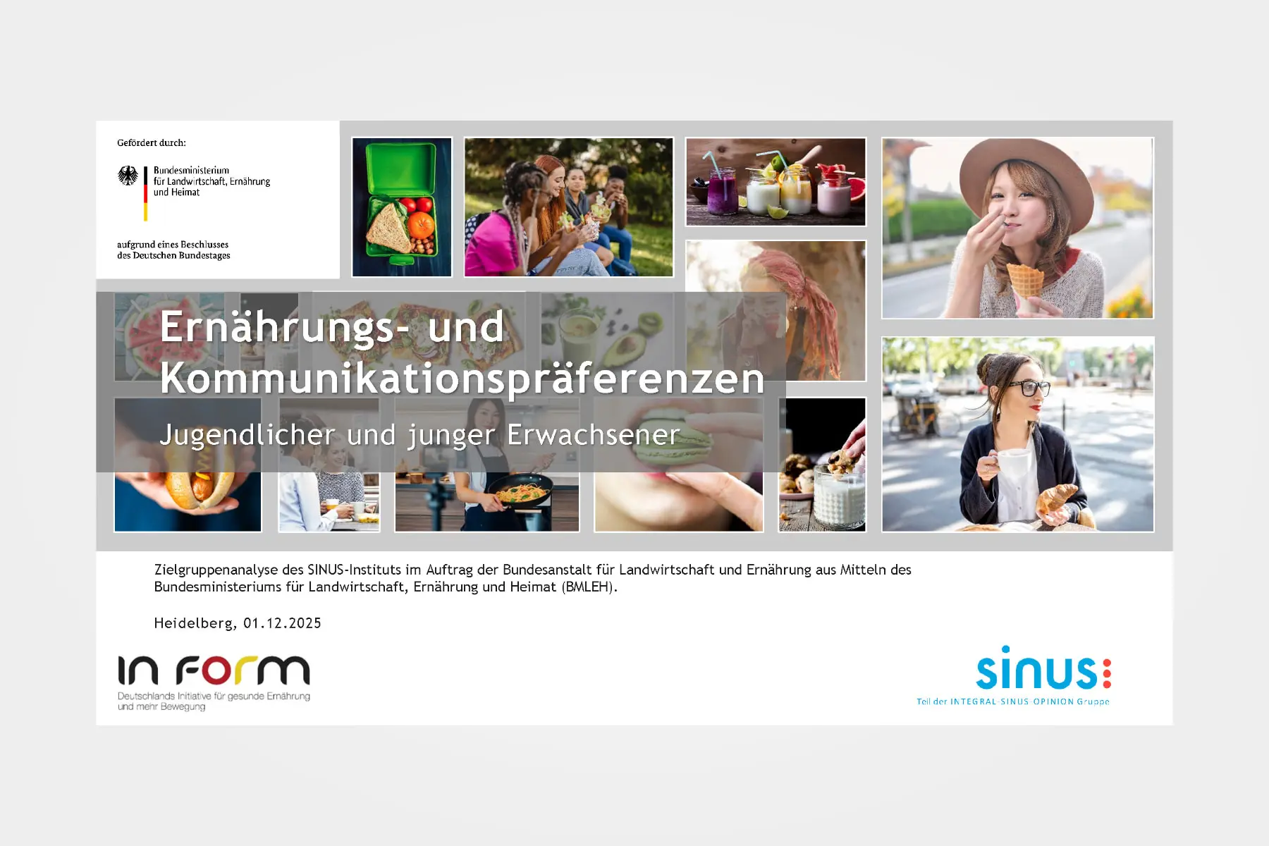 Im Fokus einer Repräsentativbefragung unter jungen Menschen stehen u.a. Ernährungswissen und -handeln (z.B. Ernährungsentscheidungen und Kochen im Alltag, gesunde & ausgewogene Ernährung) sowie Mediennutzung und Kommunikationspräferenzen zu Essen & Trinken – im Auftrag der Bundesanstalt für Landwirtschaft und Ernährung, gefördert vom Bundesministerium für Landwirtschaft, Ernährung und Heimat.
